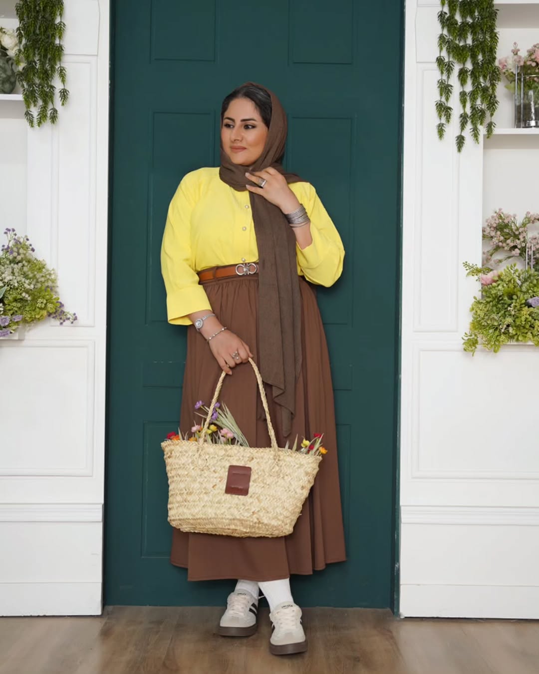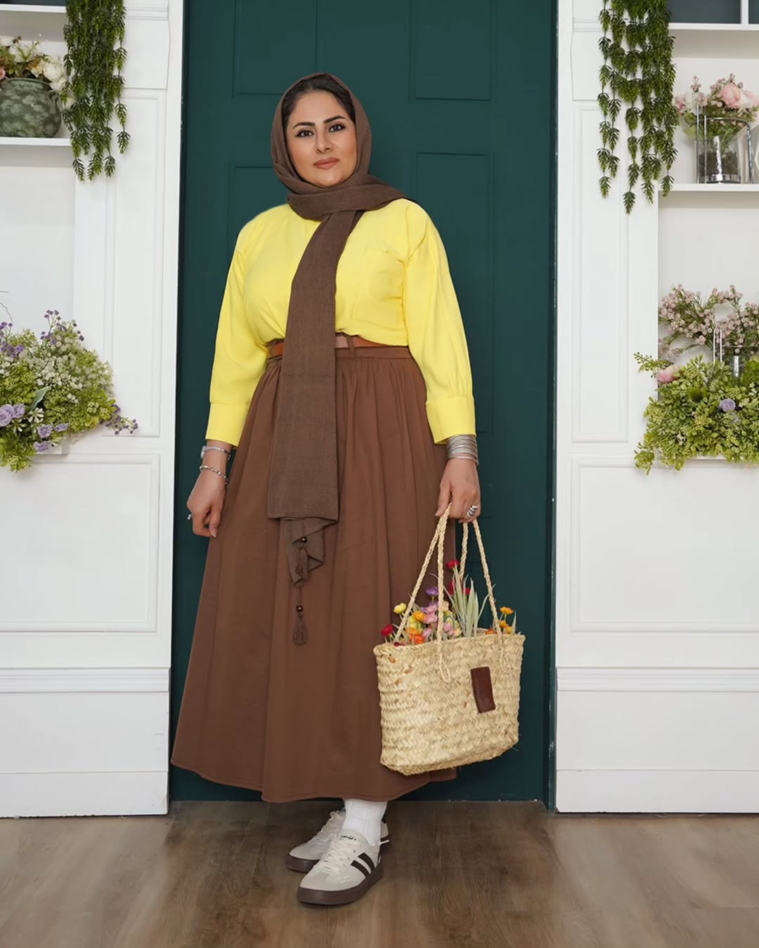 شومیز لیمویی خنک که امسالم خیلی ترند با یه دامن لینن یا شلوار لینن همون چیزیه که باید باشه. قشنگی این استایل به اینه ک میتونی با گل پسرت هم ست کنی و تو مهمونی و مجالس بدرخشین.